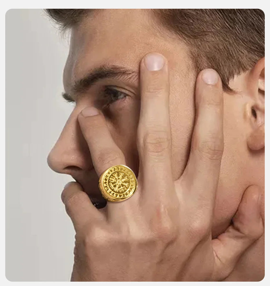 Explora la elegancia duradera con nuestro anillo para hombre tipo sello, fabricado en acero inoxidable chapado en oro. Este accesorio combina un diseño robusto con el brillo sofisticado del chapado en oro, perfecto para hombres que valoran el estilo y la calidad en cada detalle.
